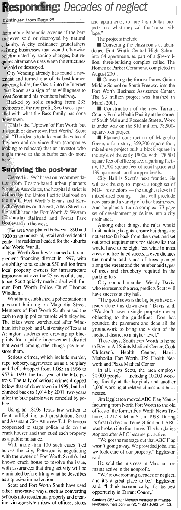 Dallas Business Journal, August 9th 2002 - Responding